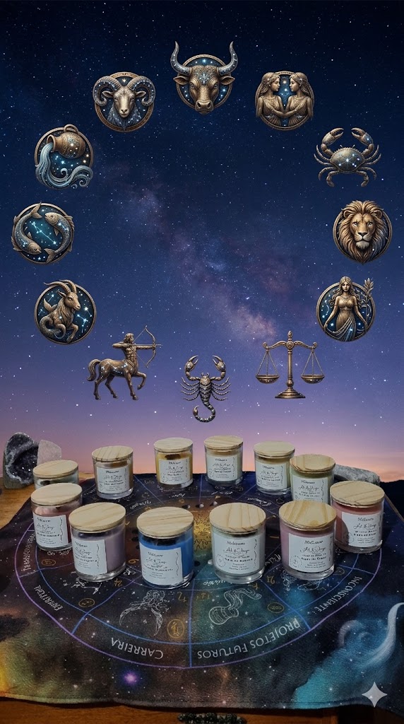 A Coleção Zodíaco foi criada para conectar a energia do cosmos ao aconchego do seu lar. Mais do que uma vela, esta é uma peça exclusiva, moldada pelas suas coordenadas astrológicas. Através da combinação do seu Sol, Lua e Ascendente, criamos uma alquimia única de fragrâncias e cristais que ressoam com a sua identidade.